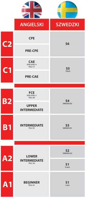 Klikając na link poniżej dowiesz się jakie spawności oraz umięjętności wymagane są na poszczególnych poziomach biegłości języka.